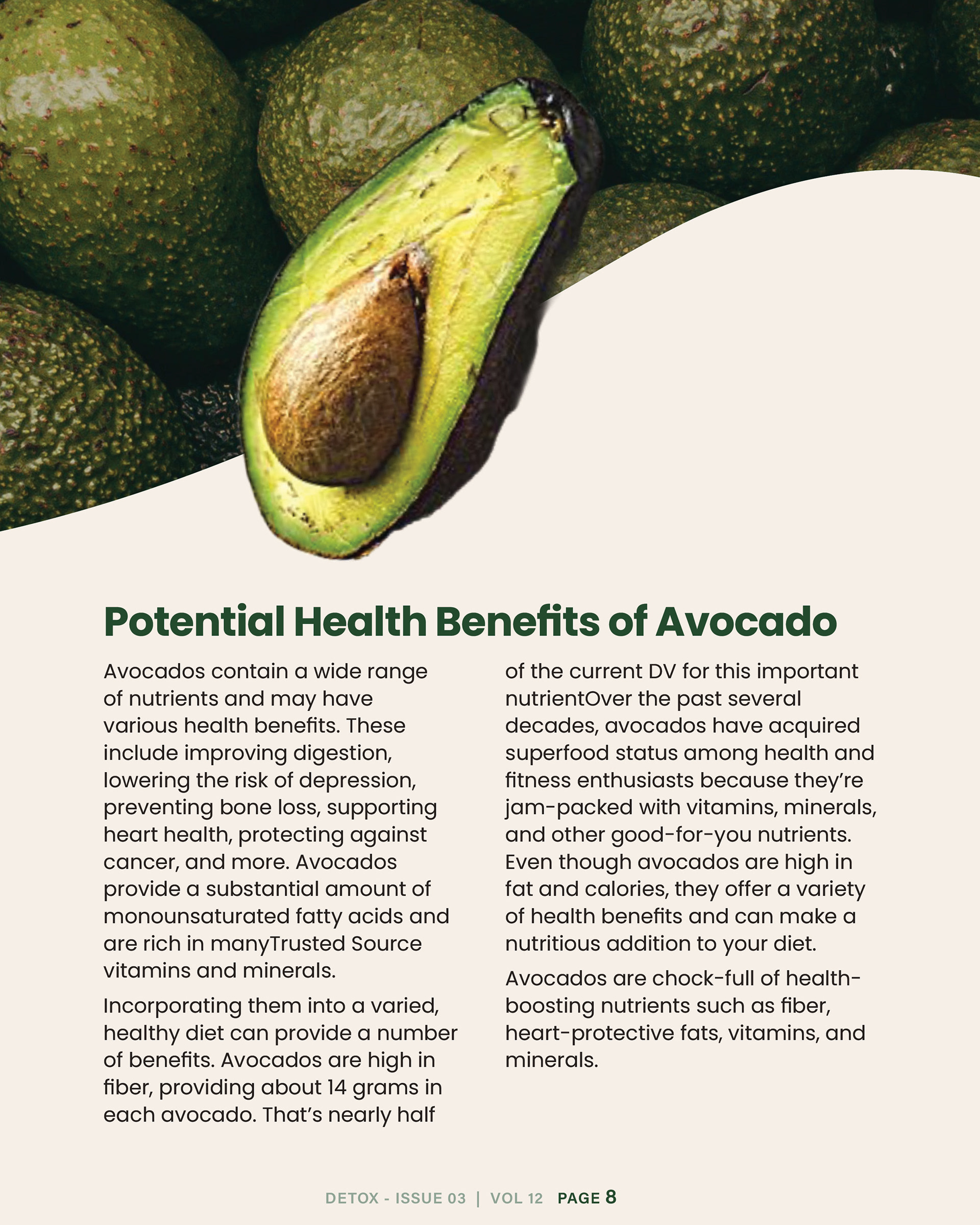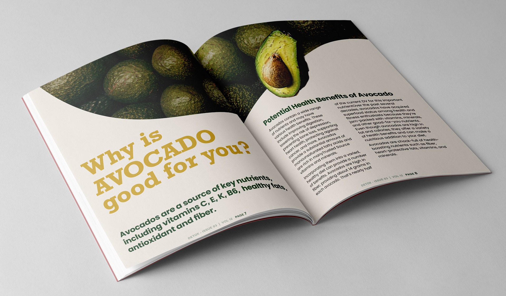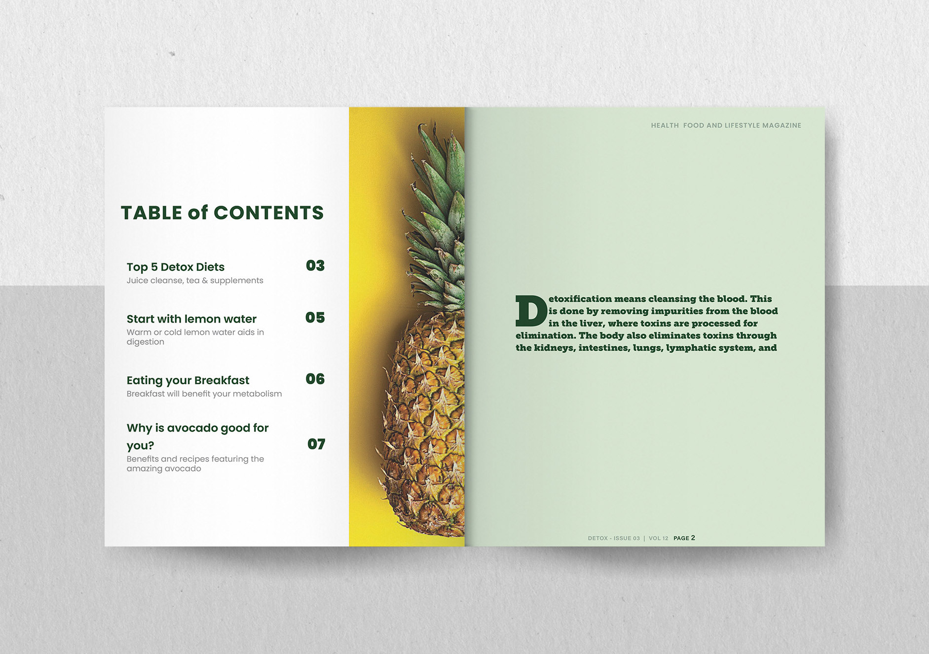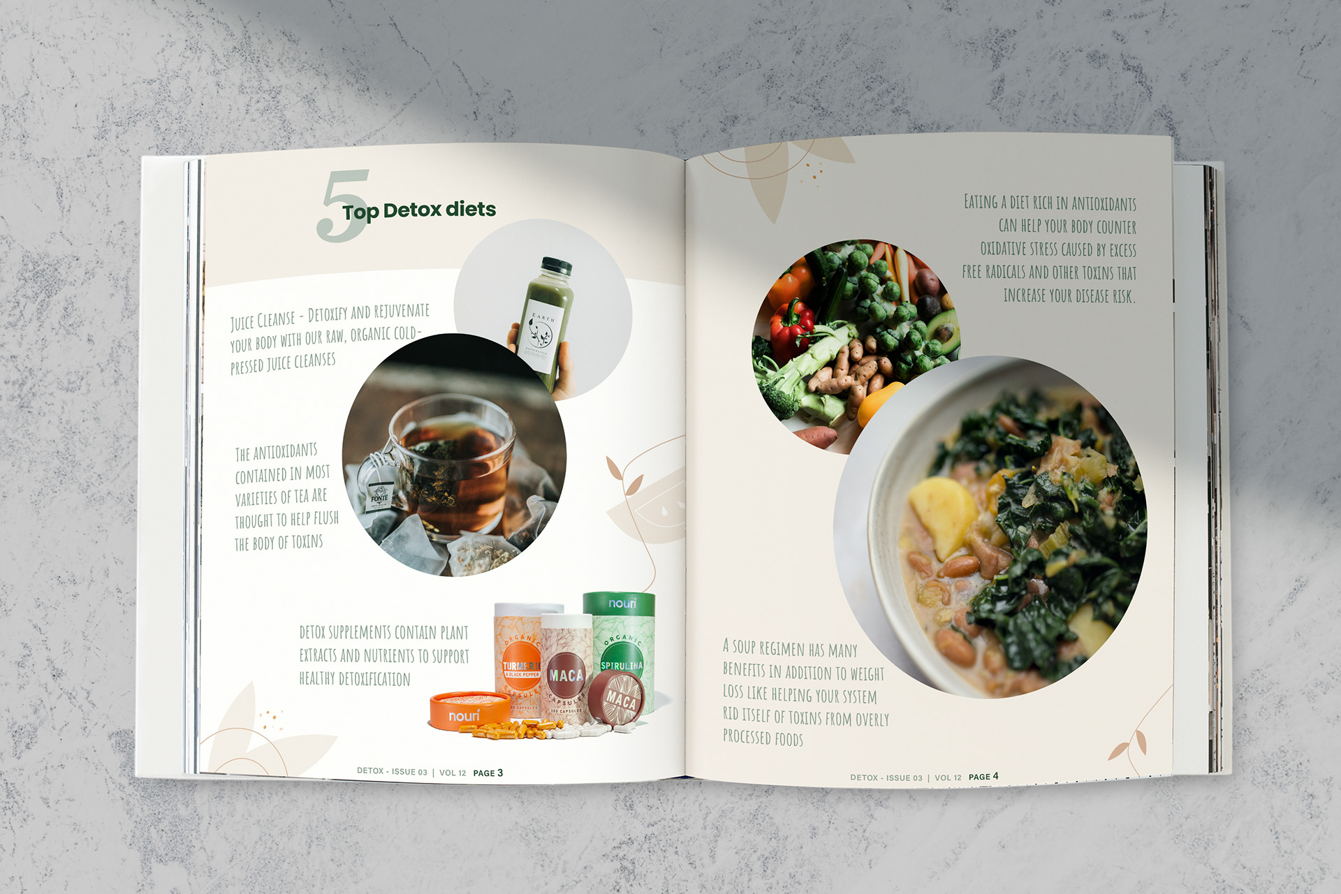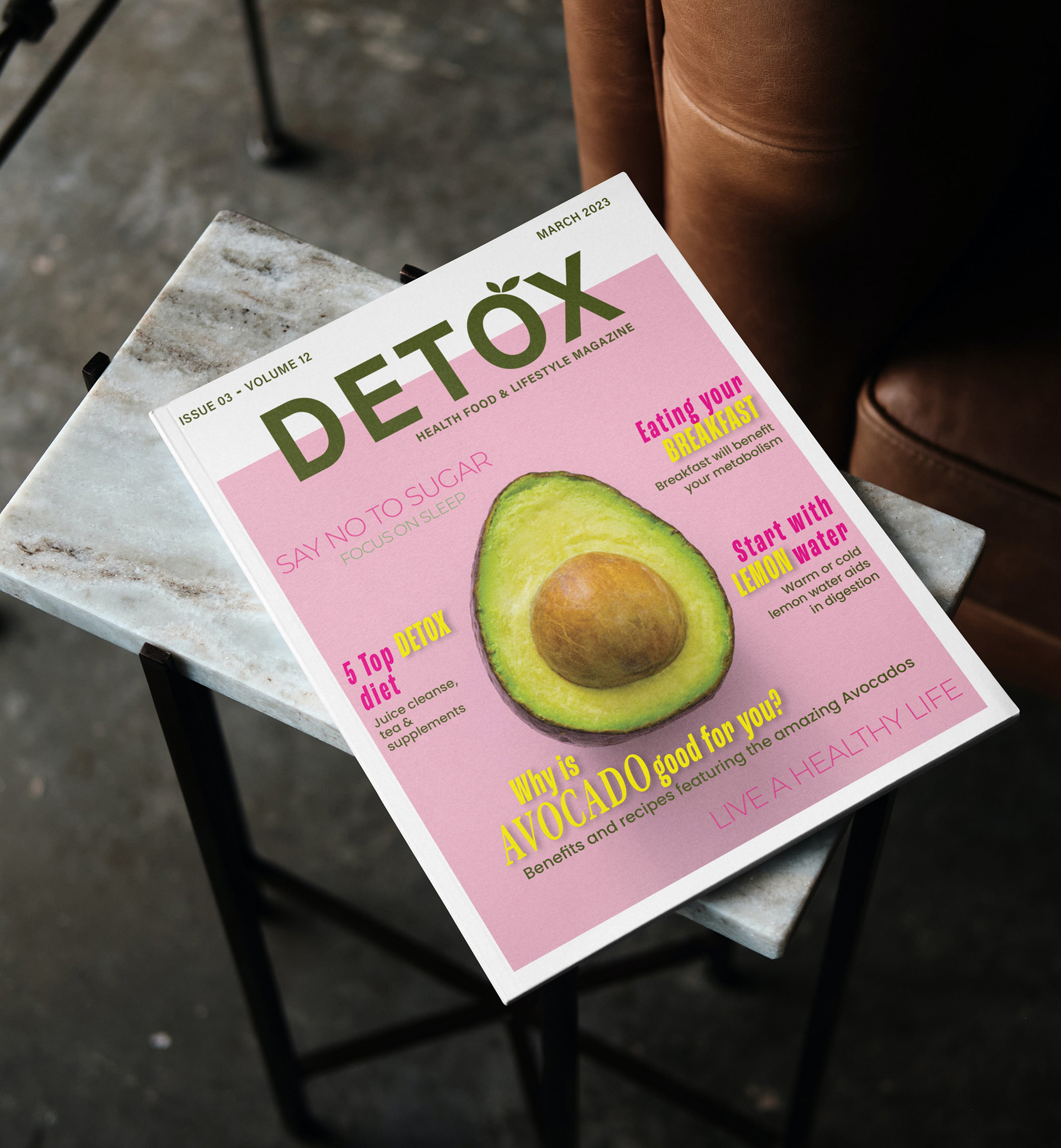 "Detox" magazine is designed to empower health conscious individuals with practical guidance on effective detoxification, mindful eating, and holistic wellness practices. It is primarily targeted at fitness enthusiasts and health-conscious professionals in the workforce who are 25 years and older. Overall, the design for "Detox" magazine aims to create a visually captivating and informative publication that educates, inspires, and empowers readers on their journey towards a healthier lifestyle.