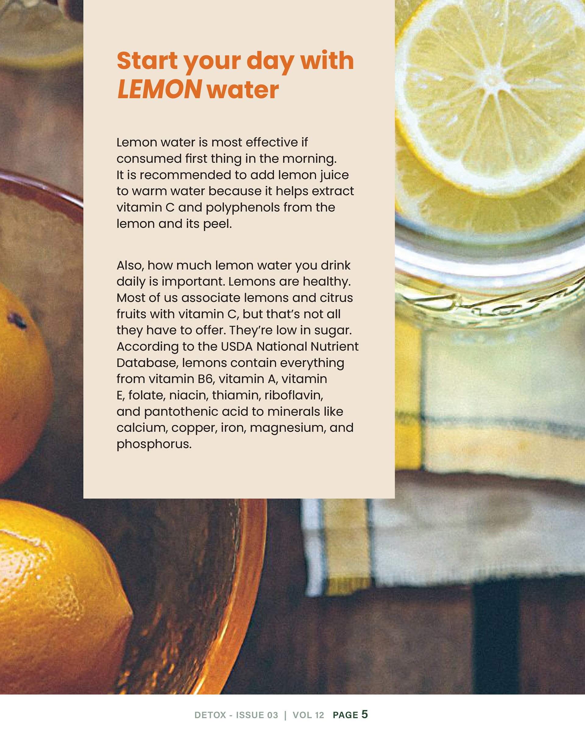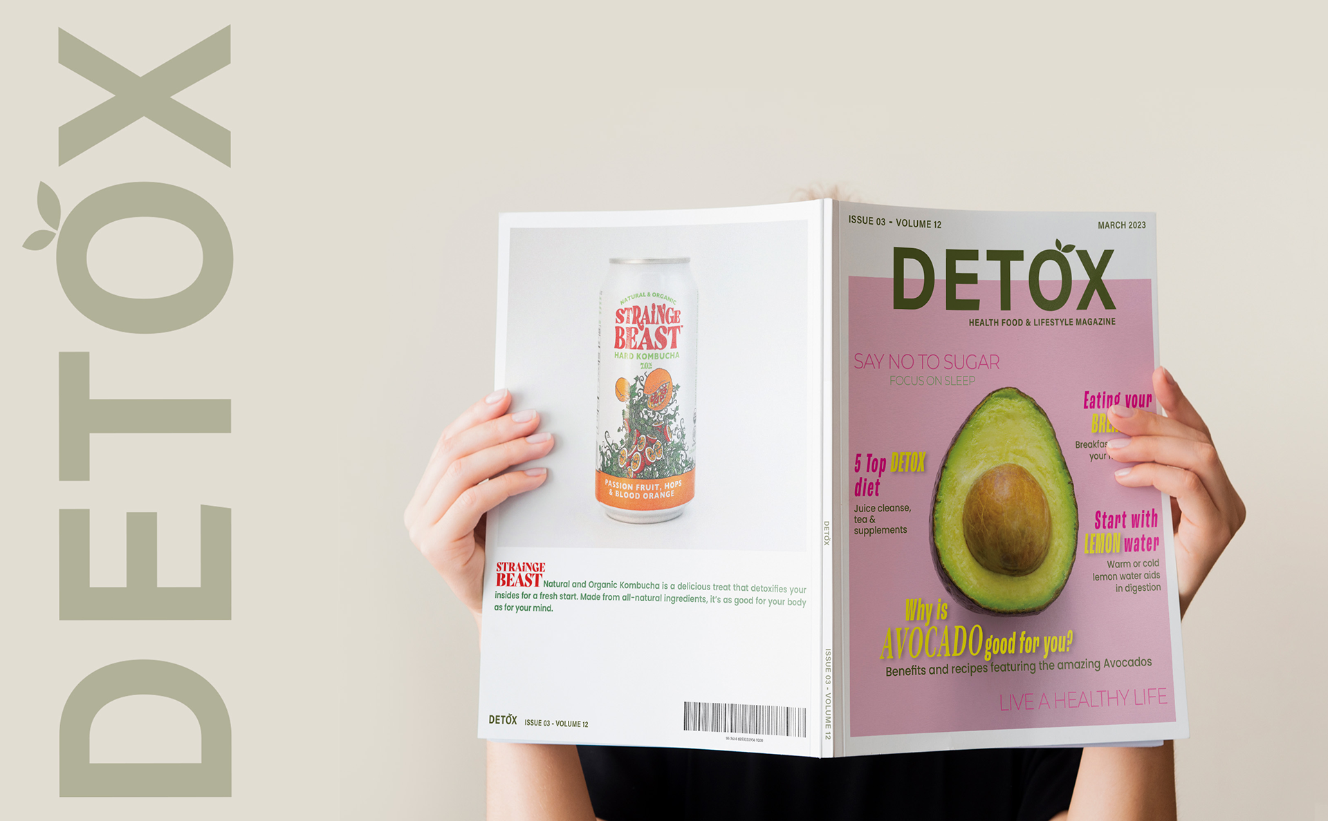 The Masthead is created with Bold Acumen variable typeface. Leaves were added with the pen tool on the letter "O" in order to create an orange fruit.